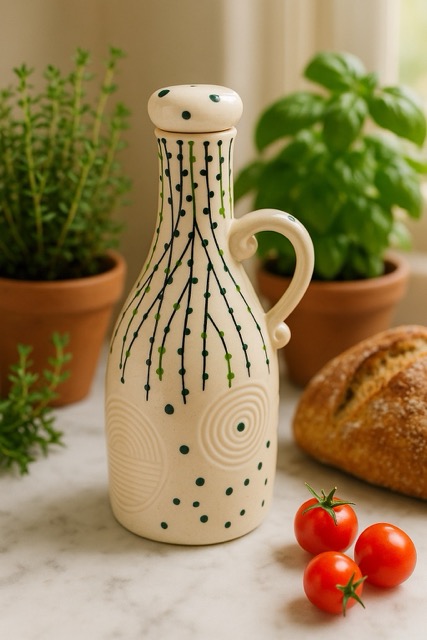 With its high capacity, unique organic design, and easy-clean glazed surface, this oil dispenser is perfect for large families, frequent entertainers, or anyone seeking a standout centerpiece for their kitchen or dining space. The secure-fitting lid protects against spills and dust, ensuring perfect storage and presentation. Whether for daily cooking or an attractive serving piece at gatherings, this handmade dispenser delivers premium performance along with a striking decorative accent. Makes a thoughtful, upscale gift for housewarmings, festivals, or culinary enthusiasts.
