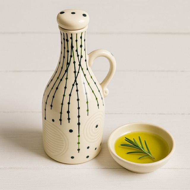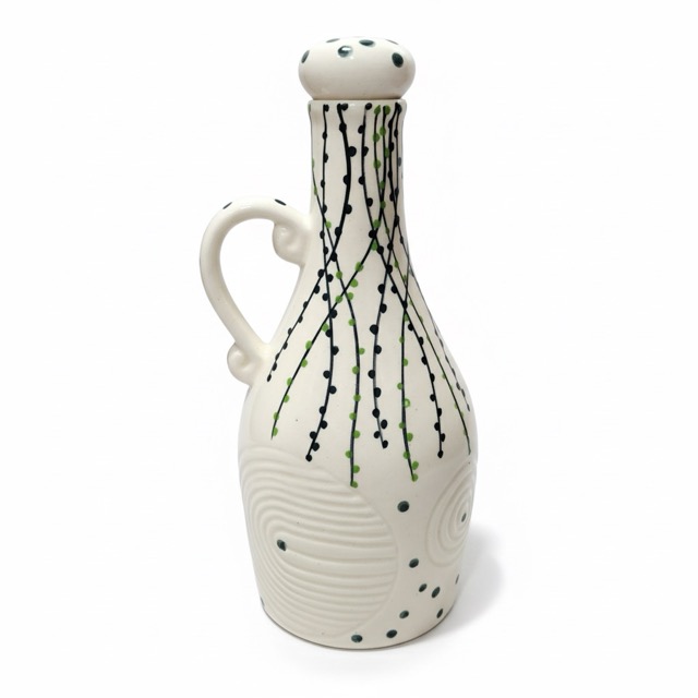 Upgrade your kitchen’s functionality and style with this large 1000ml hand-painted ceramic oil dispenser. Showcasing a gorgeous white glaze and abstract botanical patterns in green and black, this generously sized bottle combines artisan charm with daily practicality. The sculpted handle and artfully shaped spout allow for effortless, controlled pouring—ideal for olive oils, vinegar, and homemade infusions. Expertly crafted from robust, food-safe ceramic, this oil bottle shields oils from sunlight and air, preserving freshness and flavor for longer.